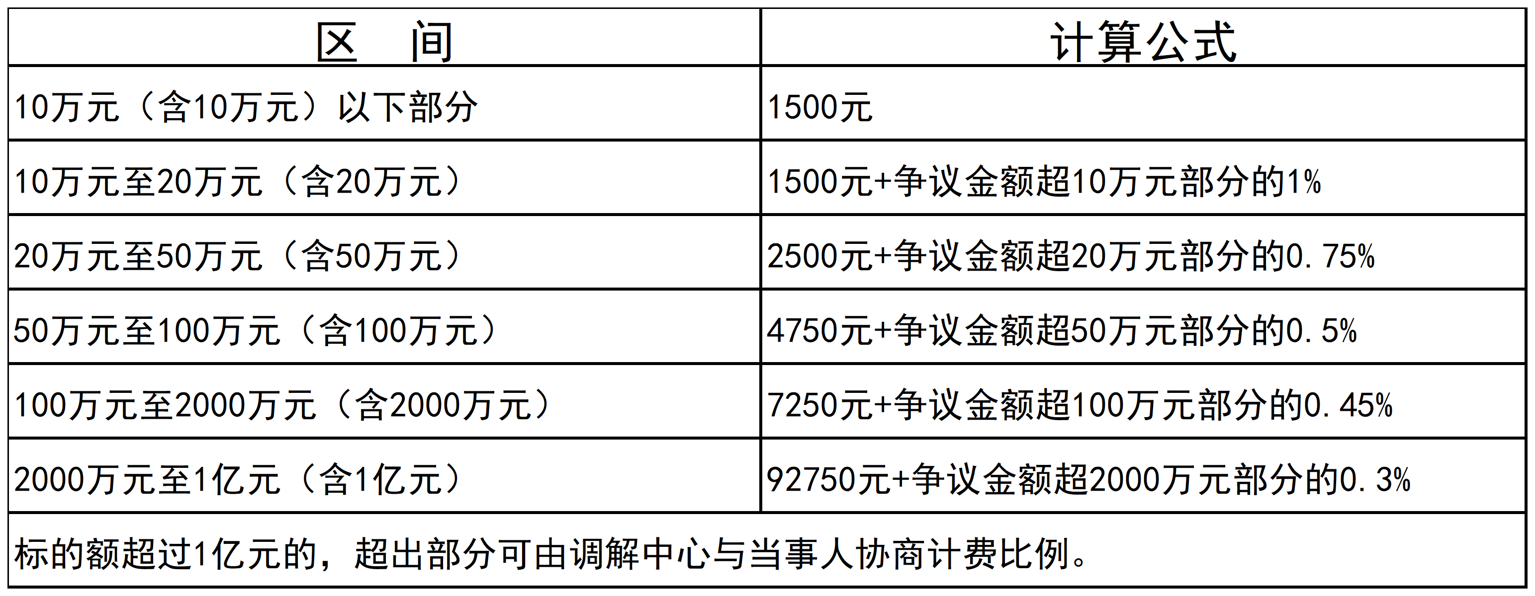 本中心按以下标准分段累计收取调解费: